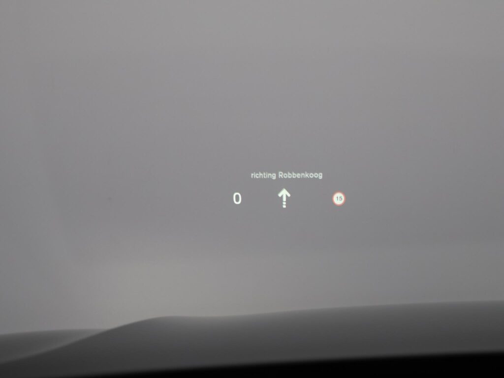 Grafisch Head-up Display voor weergave van de ingestelde snelheid van de adaptieve cruise control, verkeersbordenherkenning en navigatie aanwijzingen