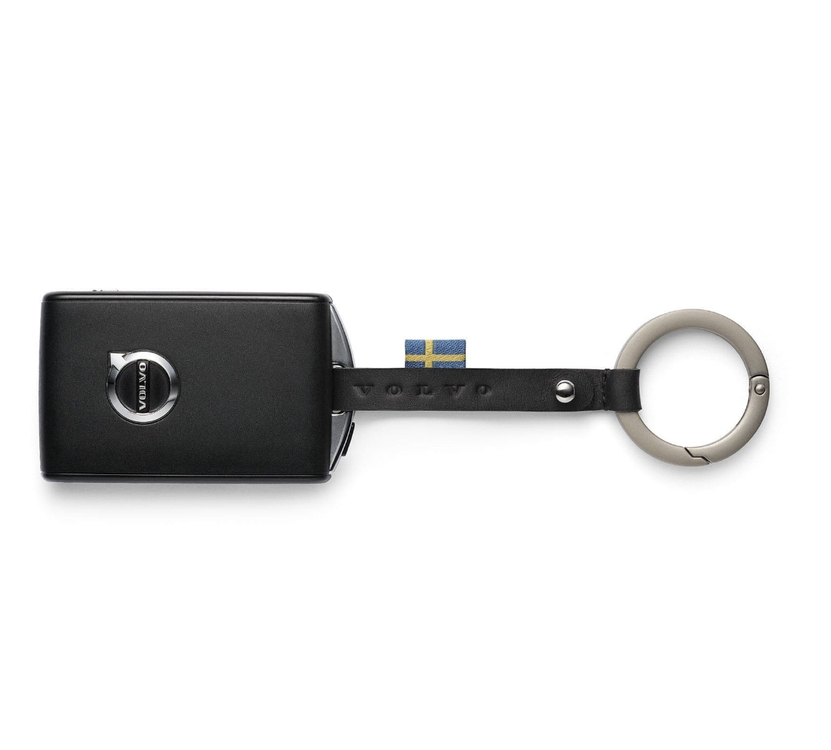 Deze stijlvolle zwarte leren sleutelring is gemaakt van het beste restleer uit onze auto’s. Het Volvo-logo is in het leren bandje gegraveerd en de sleutelring is voorzien van een drukknoopsluiting en een metalen ring. Let op: alleen geschikt voor Volvo’s met de op de afbeelding getoonde sleutel.